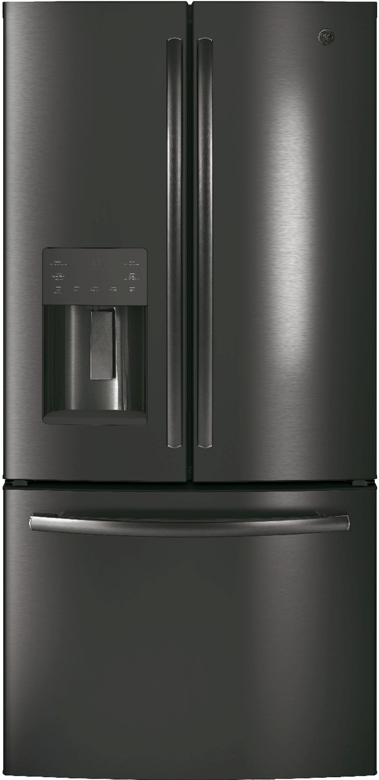 GE® 17.5 Cu. Ft. Counter Depth French Door Refrigerator-Black Stainless Steel with door alarm and LED lightingRead More